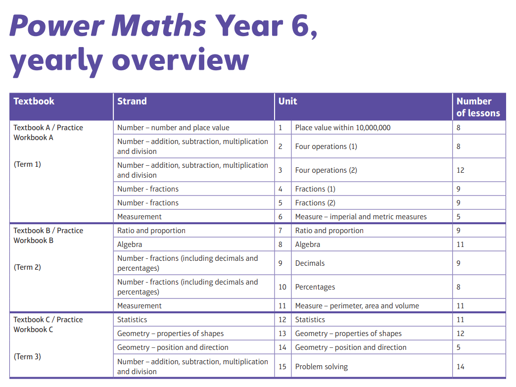 As a school, we are introducing the Power Maths schemes of learning. This follows the mastery teaching of maths, and is similar in structure to the White Rose schemes previously used. As always, lessons will be adapted to suit the needs of our class if needed. Take a look at the yearly overview: